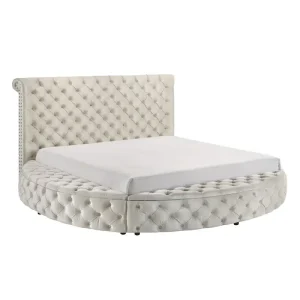 Be the first to review “Queen Size Ivory Velvet Button-Tufted Storage Bed Set”