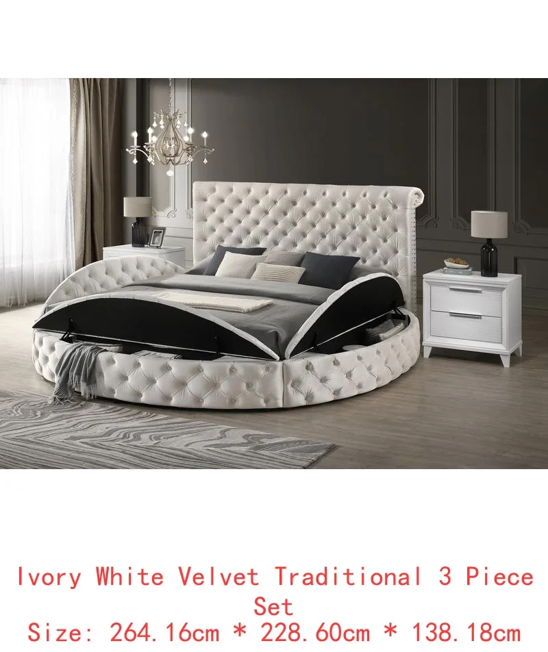 Queen Size Ivory Velvet Button-Tufted Storage Bed Set